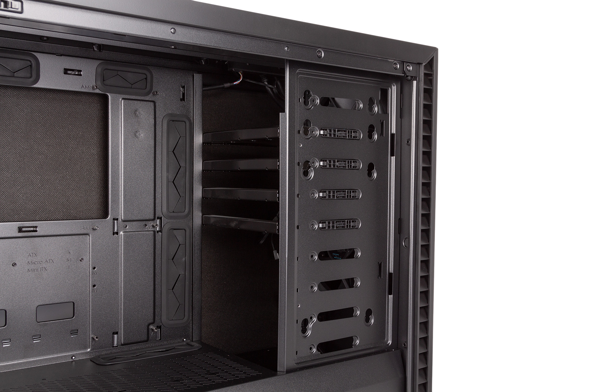 At the front of the case is a modular storage plate with six HDD trays mounted to it. There are 11 slots in total, though, so you can move them around however you like and remove unused ones. Alternatively, you can buy extra trays separately if you need more than six HDDs.