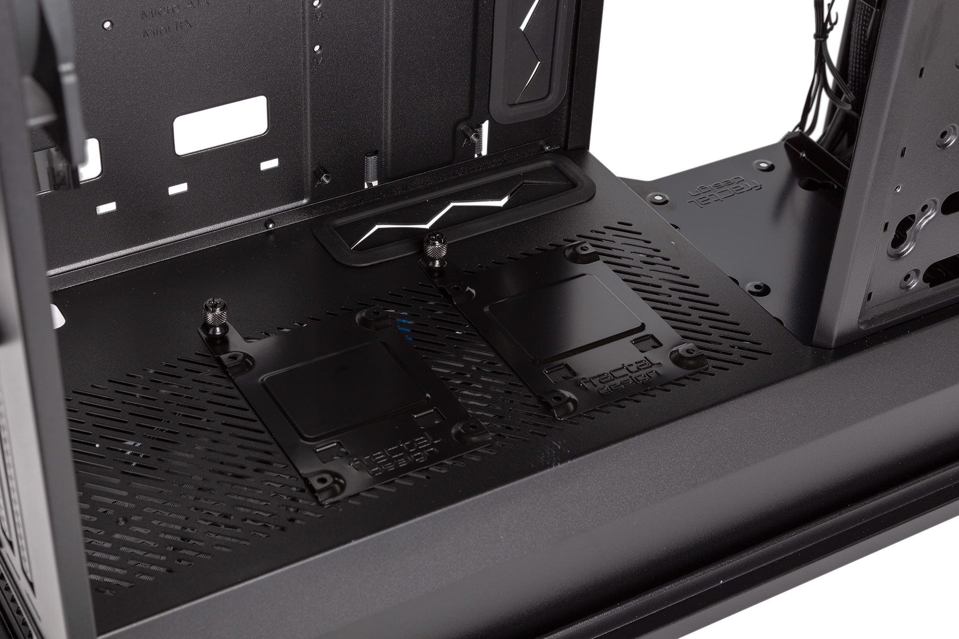 You also get two dedicated SSD mounting trays, and these are again made of steel and have a handy captive thumbscrew. By default, these are fixed to the rear of the motherboard tray, but you can move them onto the PSU shroud to give your drive(s) prominence in your build should you wish. Again, these trays are available separately, so technically you could fill all four positions, but since all the HDD trays also support 2.5” devices, you’d have to have some pretty serious storage needs for this to be necessary.