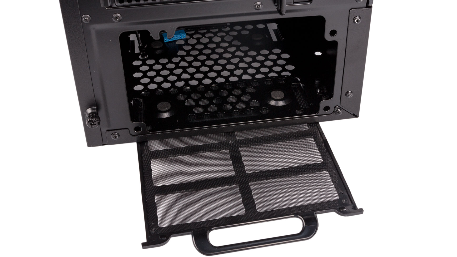A quick look at the bottom reveals that the P300 stands on foam feet rather than the preferred rubber, but this isn't a big deal considering the price. This is also where you'll find the final dust filter, a slide-out one that protects the PSU and completes the package as far as dust protection goes.