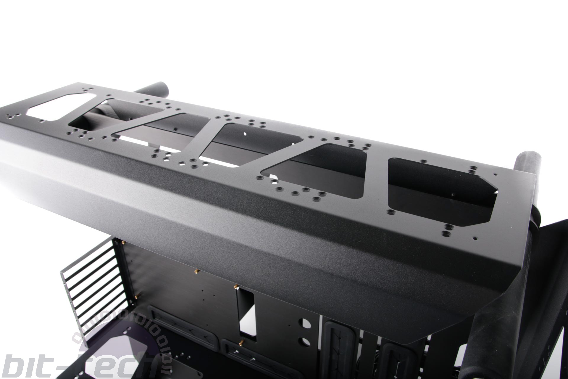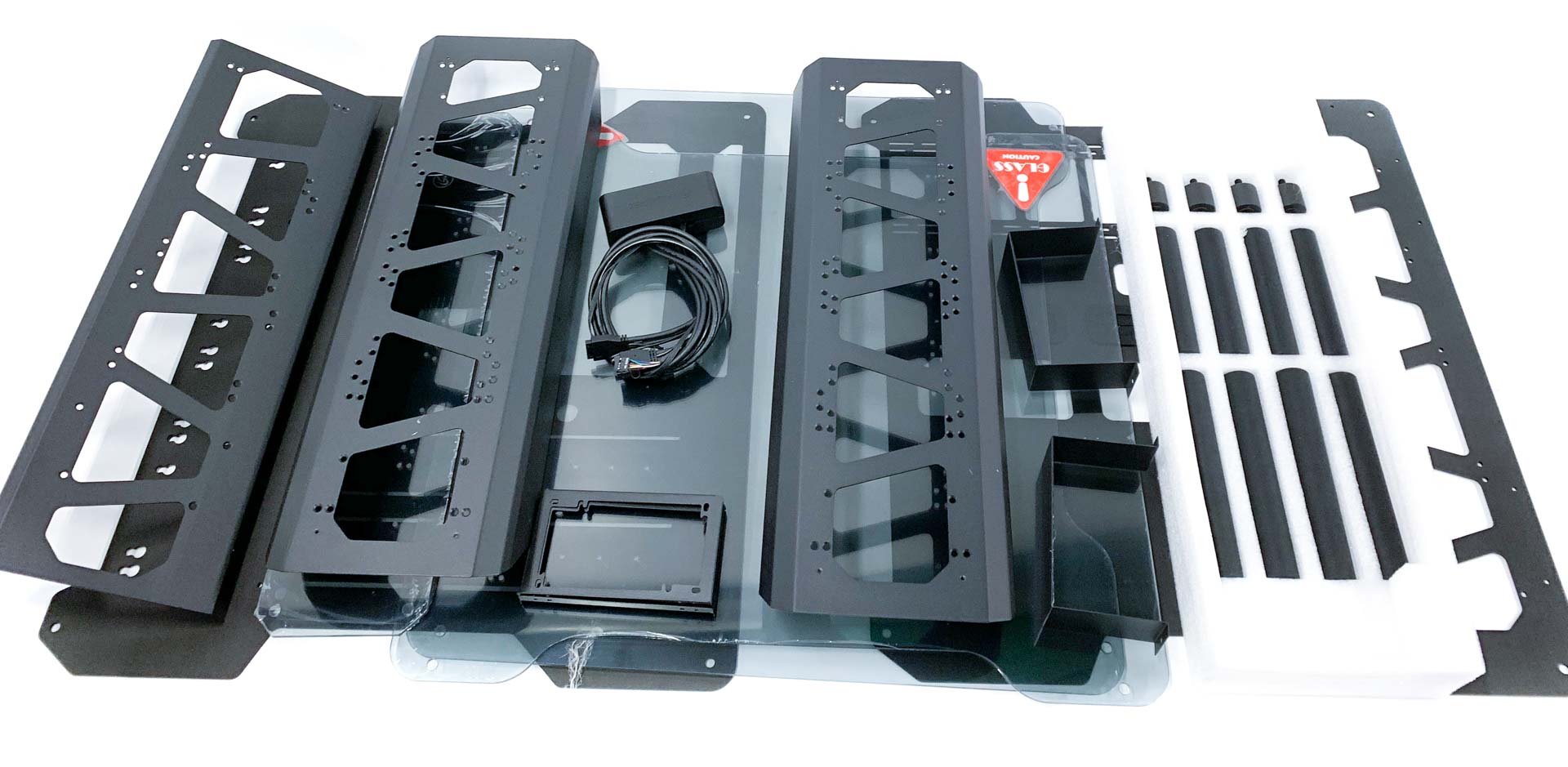 It is a tad frustrating even compared to other show cases we've built, but the end result is a case with staggering water-cooling support that will swallow a dual-loop, multi-radiator system quite easily, with dual PSU support thrown in, too. The chassis is made up of two large aluminium plates that secure together using an array of 12 supports that also hold the tempered glass side panels in place, with the result being a case that weighs nearly 22kg before you install any hardware, never mind a water-cooling system.