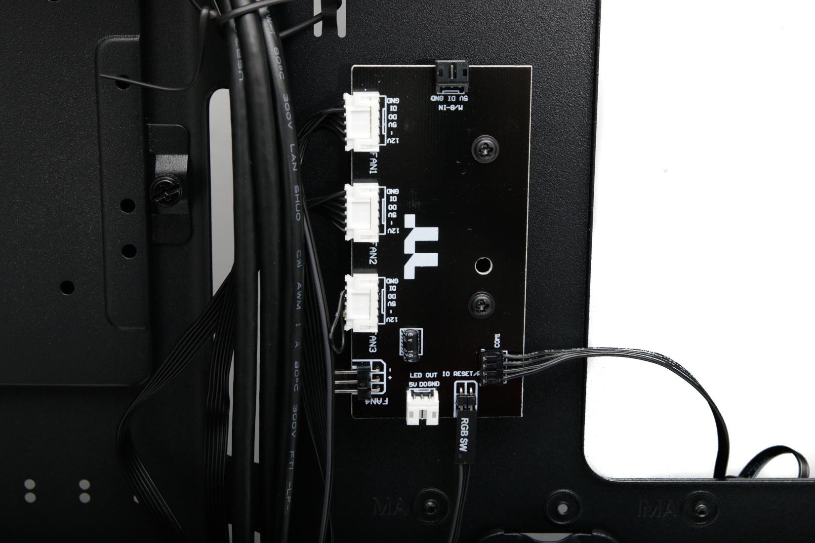 Everything but the rear fan is connected to the RGB controller as standard, so you just need to use a free SATA power connector to fire it up and the front fans power and lighting are then taken care of with a minimum of fuss. It's still hard to ignore the downside that you can't control the fan speeds thanks to Thermaltake using proprietary connectors, however.