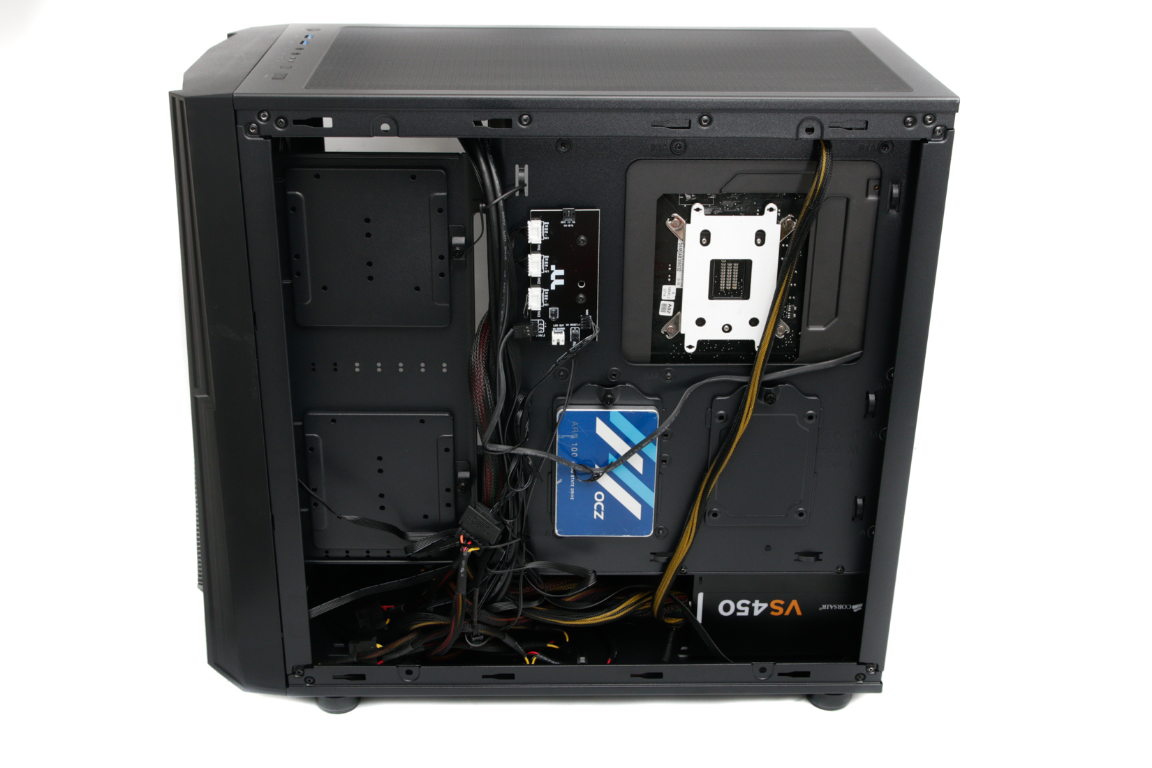 As we mentioned previously, things are rather Spartan inside the Commander C35 TG ARGB Edition, but it does have some blank canvas appeal. Those notches in the panel next to the motherboard tray support reservoirs, although these can potentially reduce GPU clearance, which stands at 410mm or 310mm with a reservoir installed. CPU height clearance sits at a generous 180mm - plenty of scope for using a monster heatsink.