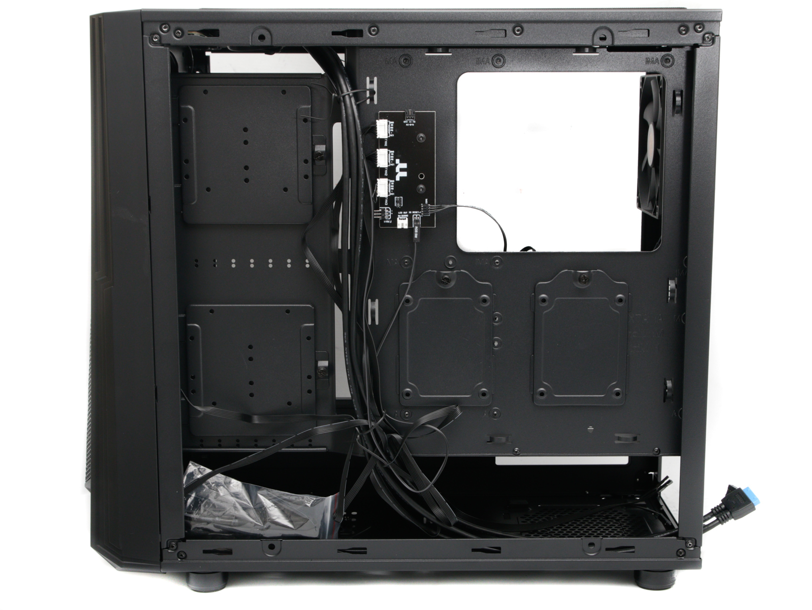 We'd like to see that remedied in future perhaps with a PWM header for the controller above that can be connected to a motherboard fan header. It's fairly easy to keep a typical system tidy inside the Commander C35 TG ARGB Edition, but a few more cable ties wouldn't have gone amiss. It was also a little bit of a stretch for our eight-pin CPU power connector, but it was fairly short.