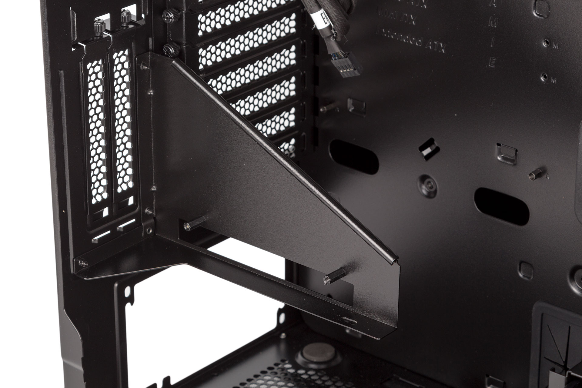 Quite a common feature these days is support for vertical GPU mounting, and again this is in line with the showcase nature of this chassis. You don't get the necessary riser cable (it just adds cost for those who don't want it), but Thermaltake does at least include the metal bracket. This will get in the way of installing expansion cards lower down the board, but primary GPUs are not impeded.