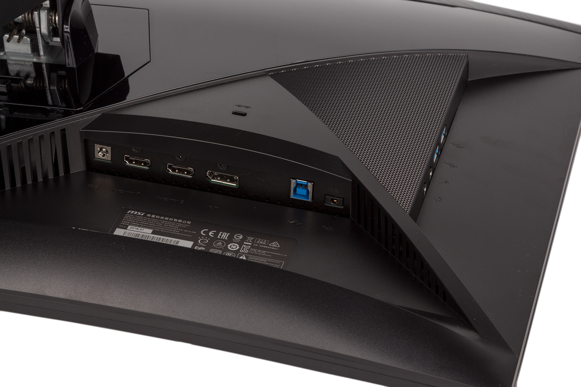 The majority of ports are down-facing, including dual HDMI 2.0 and a single DisplayPort 1.2 connector. Both types support 144Hz at the native resolution, and both support AMD FreeSync between 48 and 144Hz. This is a nice, wide range, but sadly support for Low Framerate Compensation is not included. Update 18/05/2018: We had a miscommunication with MSI, and it has now been in touch to confirm that LFC is indeed supported. It is also looking to get an entry for this monitor placed into AMD's otherwise comprehensive list of FreeSync monitors. Next to these ports is a USB 3.0 Type-B connector, which connects to your PC and powers the two side-facing Type-A ports as well as allowing you to control the RGB lighting – more on that soon.