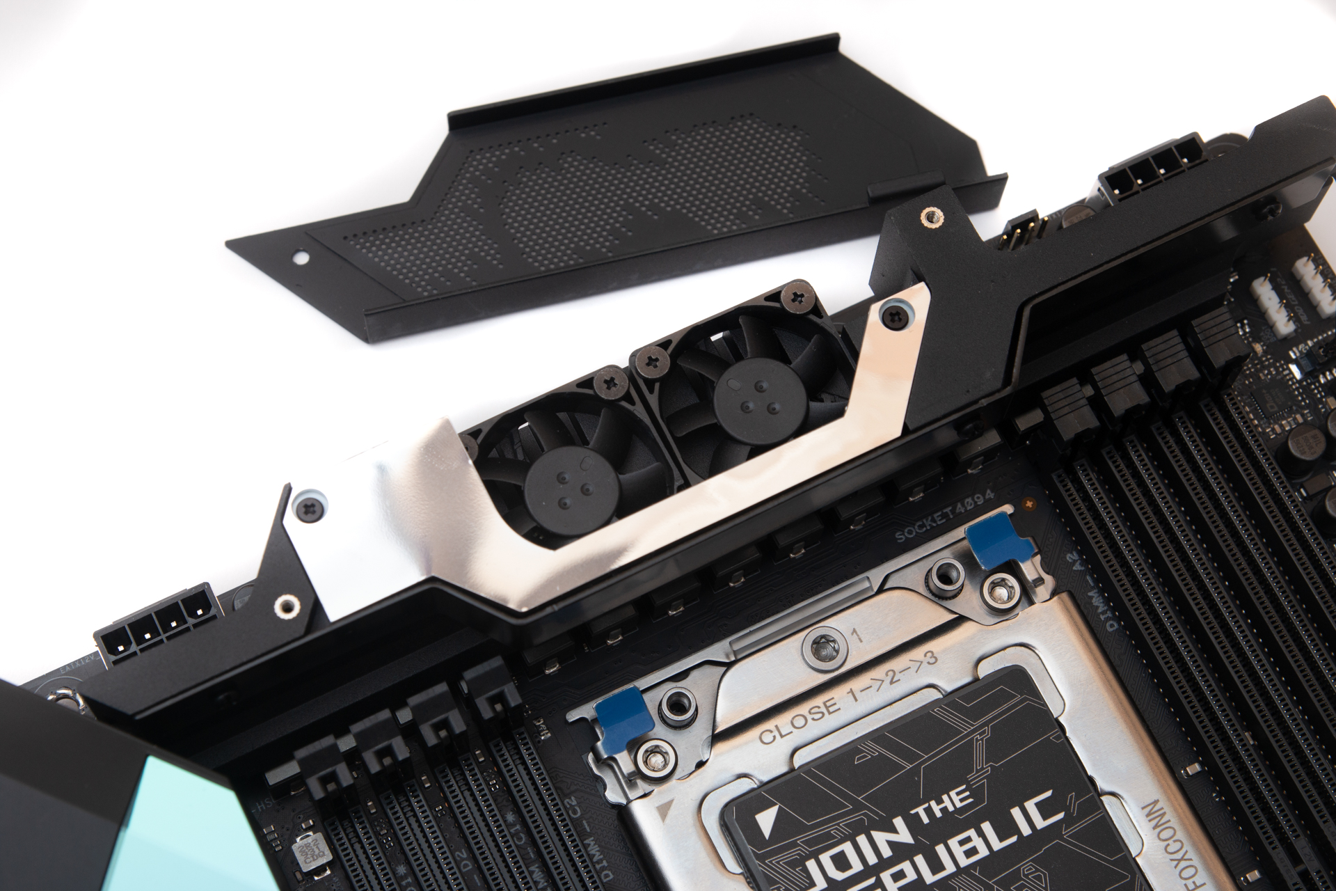 Both boards have a pair of fans cooling the VRM heatsinks and this is also part of a 16-phase power delivery. Unlike every other TRX40 board we've tested so far, though, the ROG Strix TRX40-E Gaming doesn't have all of its M.2 ports sitting horizontally under heatsinks and has one mounted vertically. This does at least mean it's easy to access, but it's not the most attractive, especially once populated.
