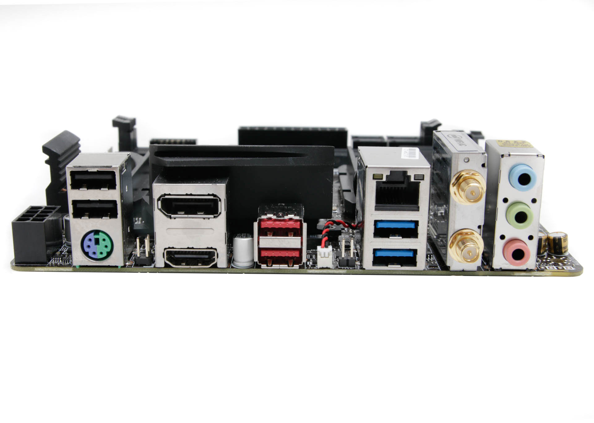 Despite its low price, the MSI B350I Pro AC sports two four-pin RGB LED headers although there's no lighting on the board itself, presumably to keep the price down. Like the Gigabyte board it also has onboard 802.11ac Wi-Fi with a pair of screw-on antennas in the box, but one thing the MSI board does lack is a modern audio codec, opting for Realtek's ALC887 compared to the Gigabyte board's ALC1220. In addition, the MSI board only has three audio outputs, lacking an optical output and limiting scope for multi-channel speaker setups.