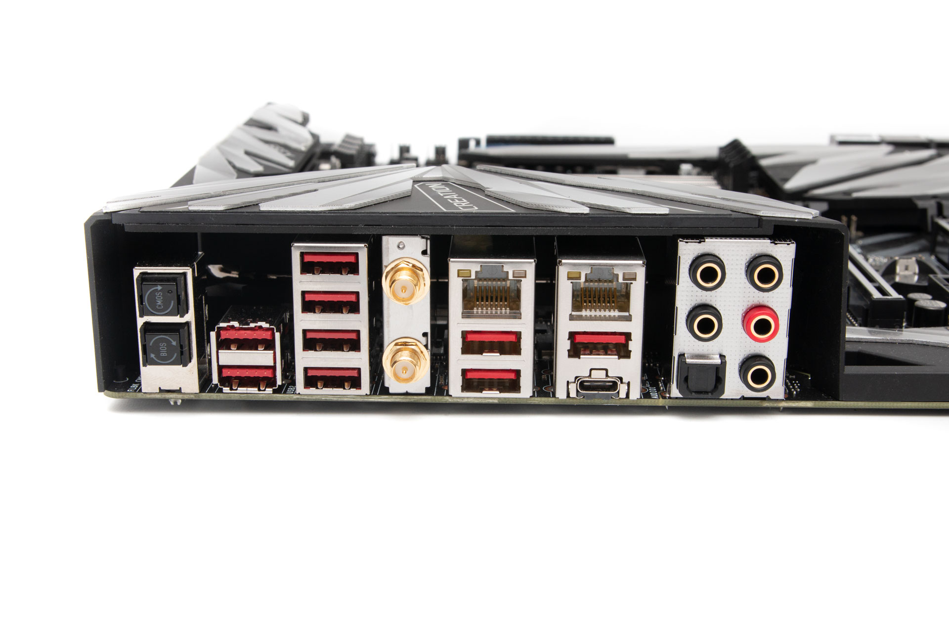 Unsurprisingly, you get full-fat Realtek ALC 1220 audio with gold-plated connectors on the rea I/O panel. You'll also find nine Type-A USB 3.0 ports as well as the Type-C USB 3.0 port and BIOS-related buttons too. Both Ethernet ports are Intel-powered, and there's also an Intel Wireless-AC 9260 802.11ac card that's Bluetooth 5 capable too.