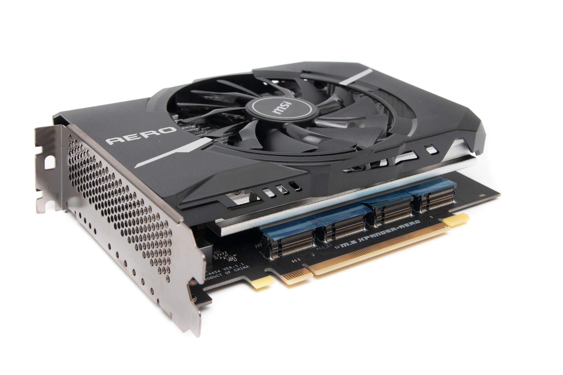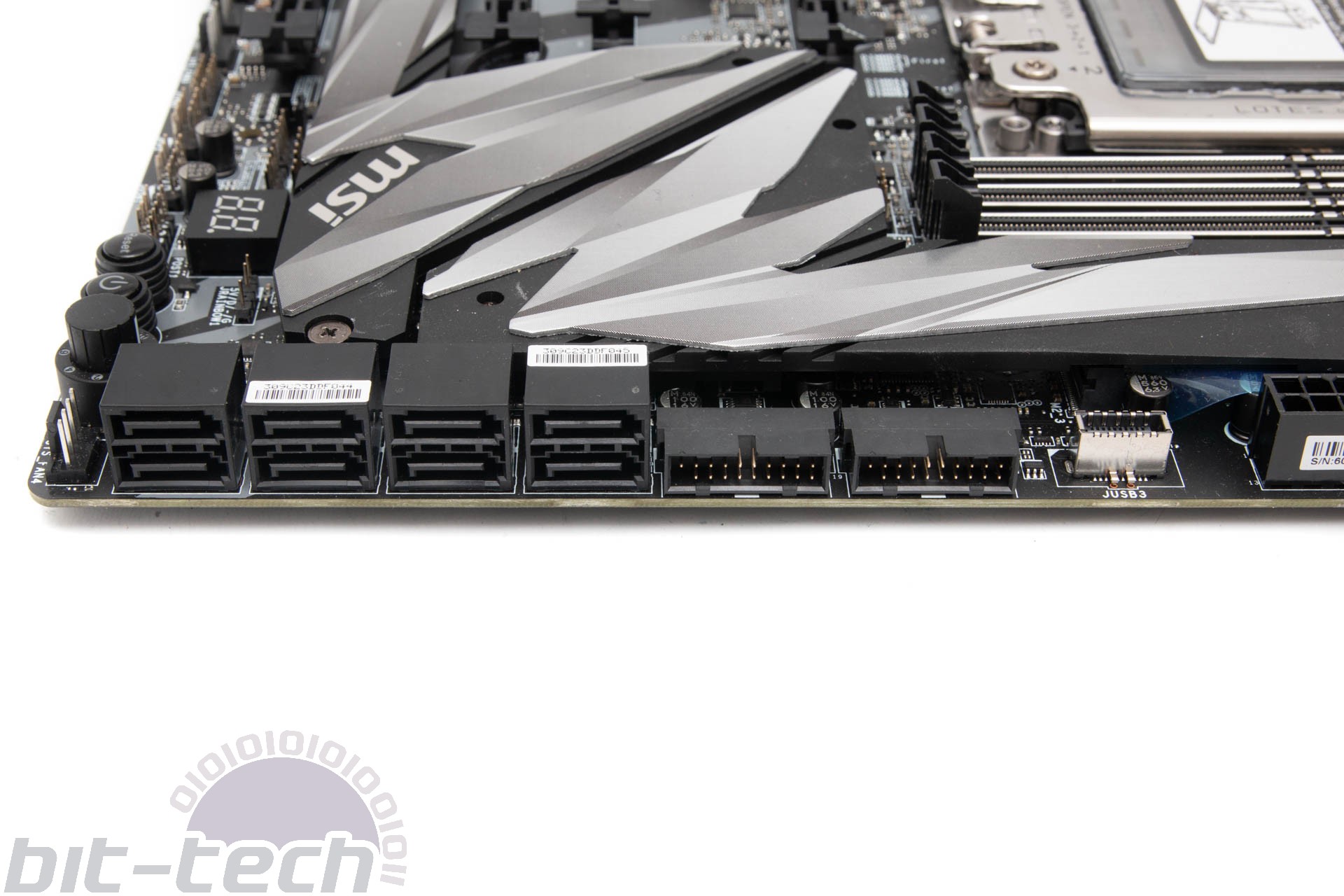 If the power delivery didn't blow you away then the storage and connectivity options will. There are eight SATA 6Gbps ports in addition to the three M.2 ports, twin USB 3.0 headers, and a USB 3.1 Gen 2 Type-C header as well - just as well, as the one on the rear I/O panel is limited to USB 3.0 speeds. As if this wasn't enough, MSI also includes the crazy M.2 Xpander-Aero - a quad M.2 port 16x PCIe dual-slot expansion card. This beast houses PCIe-only M.2 SSDs and includes a large fan-assisted cooler, chilling the heatsink that sits on top of the SSDs to hopefully end all worries about them throttling.