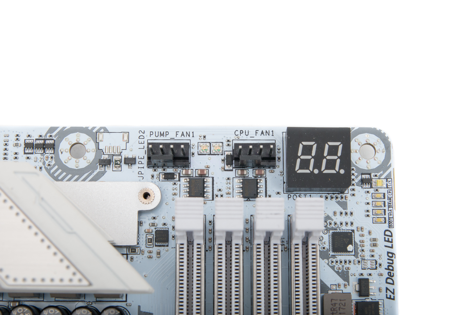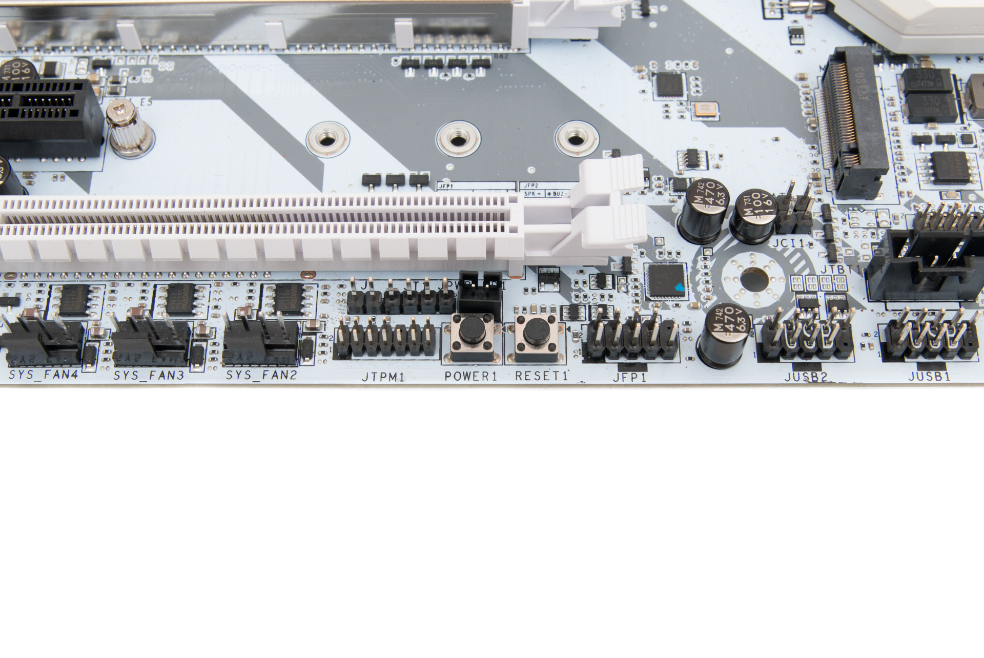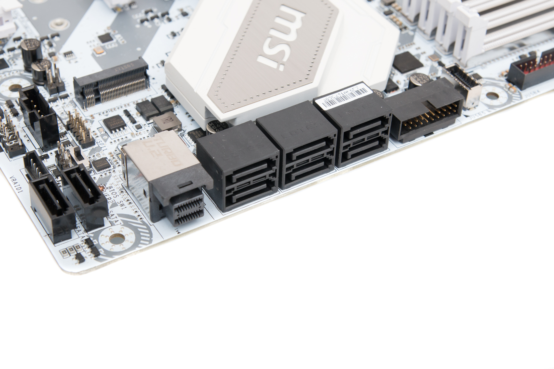 Furthermore, you get a USB 3.1 Gen 2 header on the PCB as well as Type-A and Type-C ports on the rear panel for some future-proofing. Packing all this into an ATX PCB was no small feat, but we have few if any complaints here, although you could argue the U.2 port is somewhat redundant these days with M.2 having taken over almost completely in the PCIe SSD market. We'd also maybe ditch the RGB lighting header too since this board is going to be all about white lighting, but neither of these features impact negatively on the layout anyway.