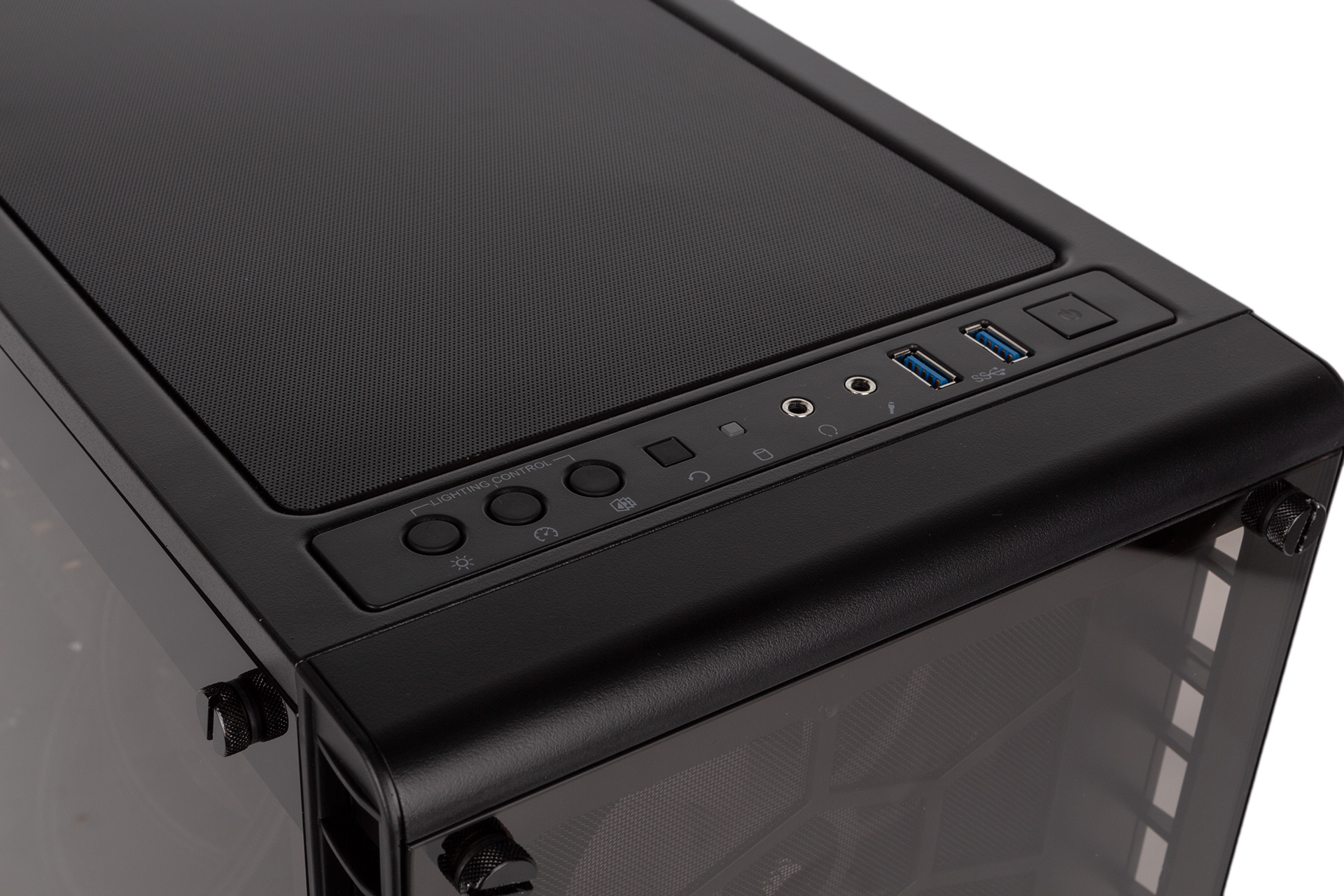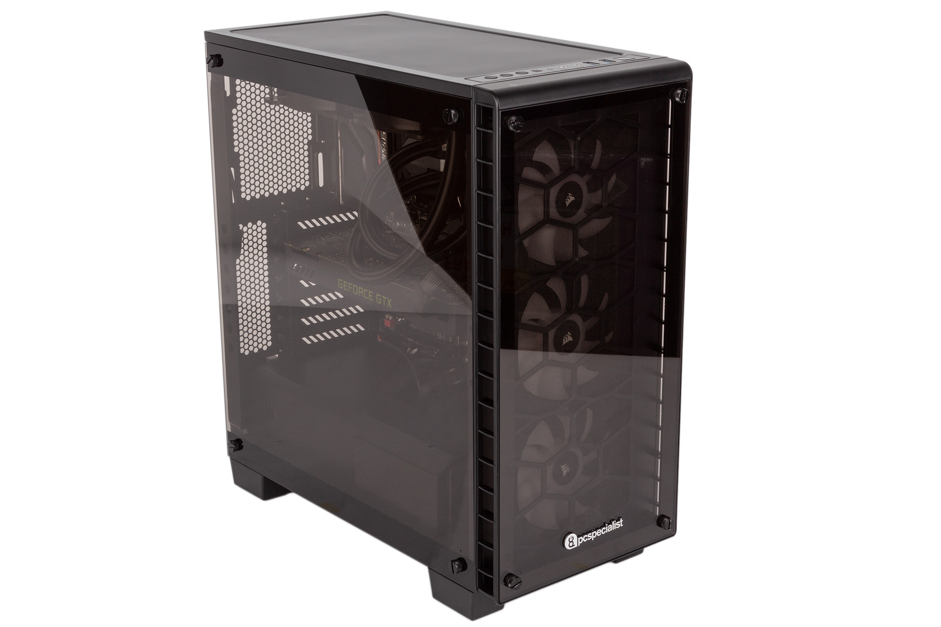 The Magma Pro considers form as well as function, as it’s presented in the lovely Corsair Crystal Series 460X RGB, a mid-tower with a premium edge thanks to tempered glass front and side panels. It has full dust filter coverage with easy access for cleaning and two front USB 3.0 ports – no USB 3.1, sadly, but this is taken care of on the rear panel with both Type-A and Type-C connectors. Our only gripe with the case here is that PC Specialist attached its logo at a slightly wonky angle on the front.