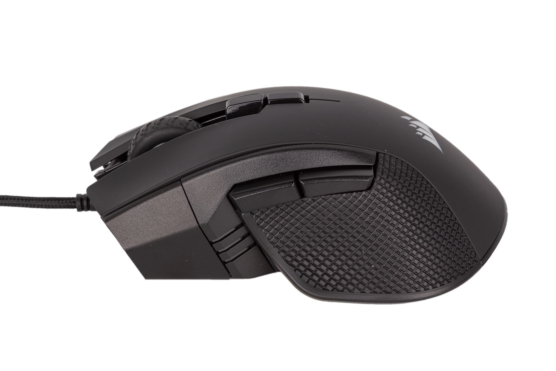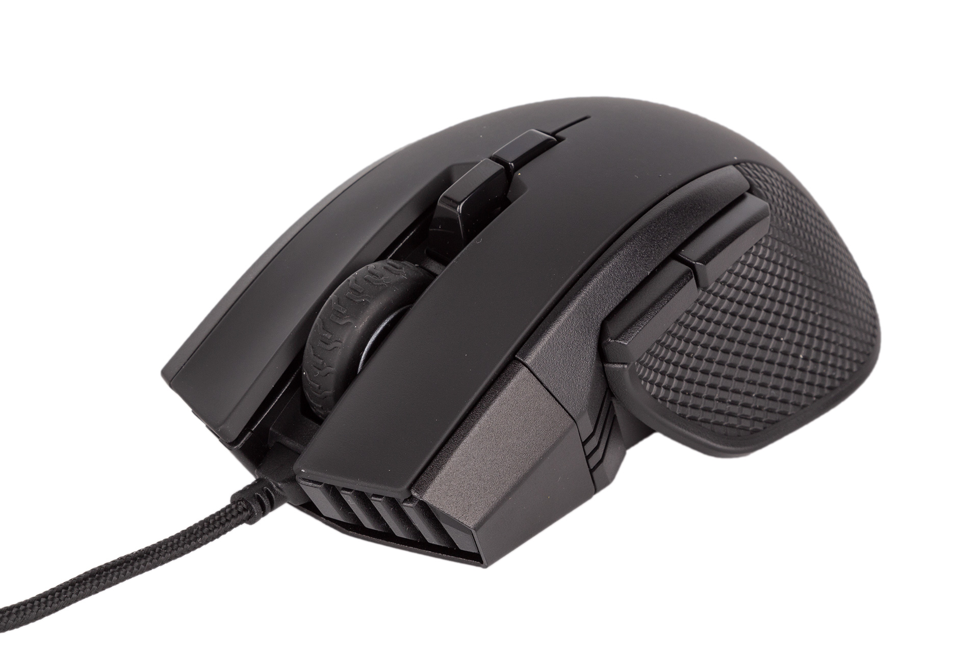 Corsair is using Omron switches rated to over 50 million clicks beneath the main clickers. I’m told these have a 60g actuation force and 0.45mm actuation distance, and subjectively this translates into the usual crisp precision that I associate with Omron switches. Fast, repeated clicking (e.g. moving in a MOBA or shooting in single-fire mode) is handled very well too.