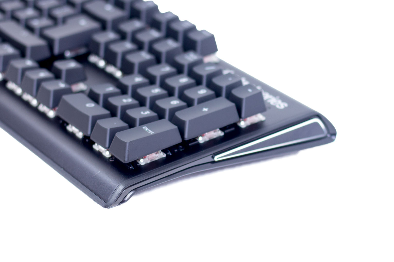 Getting to the important part of the keyboard, the Apex M750 uses SteelSeries QX2 switches. These switches have been developed alongside Gateron and do feel fantastic. Gateron is a very well known switch manufacturer and one of my personal favourites, especially for Gateron Greens. This is the first time I have used QX2 switches (or something similar that's Gateron-branded) and I must admit I really do like them. I'm not usually a fan of linear switches, and these are very similar to Cherry MX Red switches with an actuation point of 2mm and a 45cN weight, but they do feel that little bit nicer to me. This is, of course, a personal opinion, and switches are very much down to user preference. I've been using this keyboard for a good while now, and I've not had any issues with typing. In fact, I've had no problems with the switches at all.