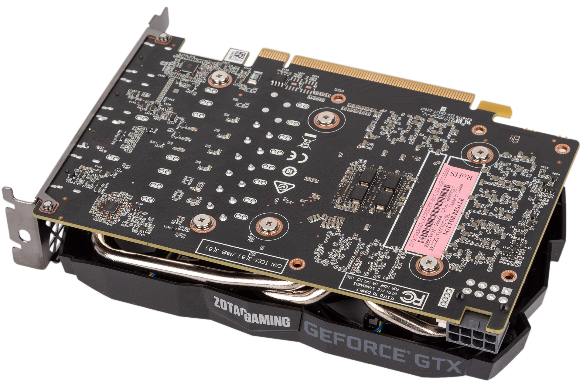 Whereas Palit opted for one apiece of DVI, DisplayPort, and HDMI, Zotac has taken a more modern stance with a trio of DisplayPort headers (which you’ll need for adaptive sync) and one HDMI. Having DVI perhaps makes more sense on a card like this, but it’s not a big deal either way.