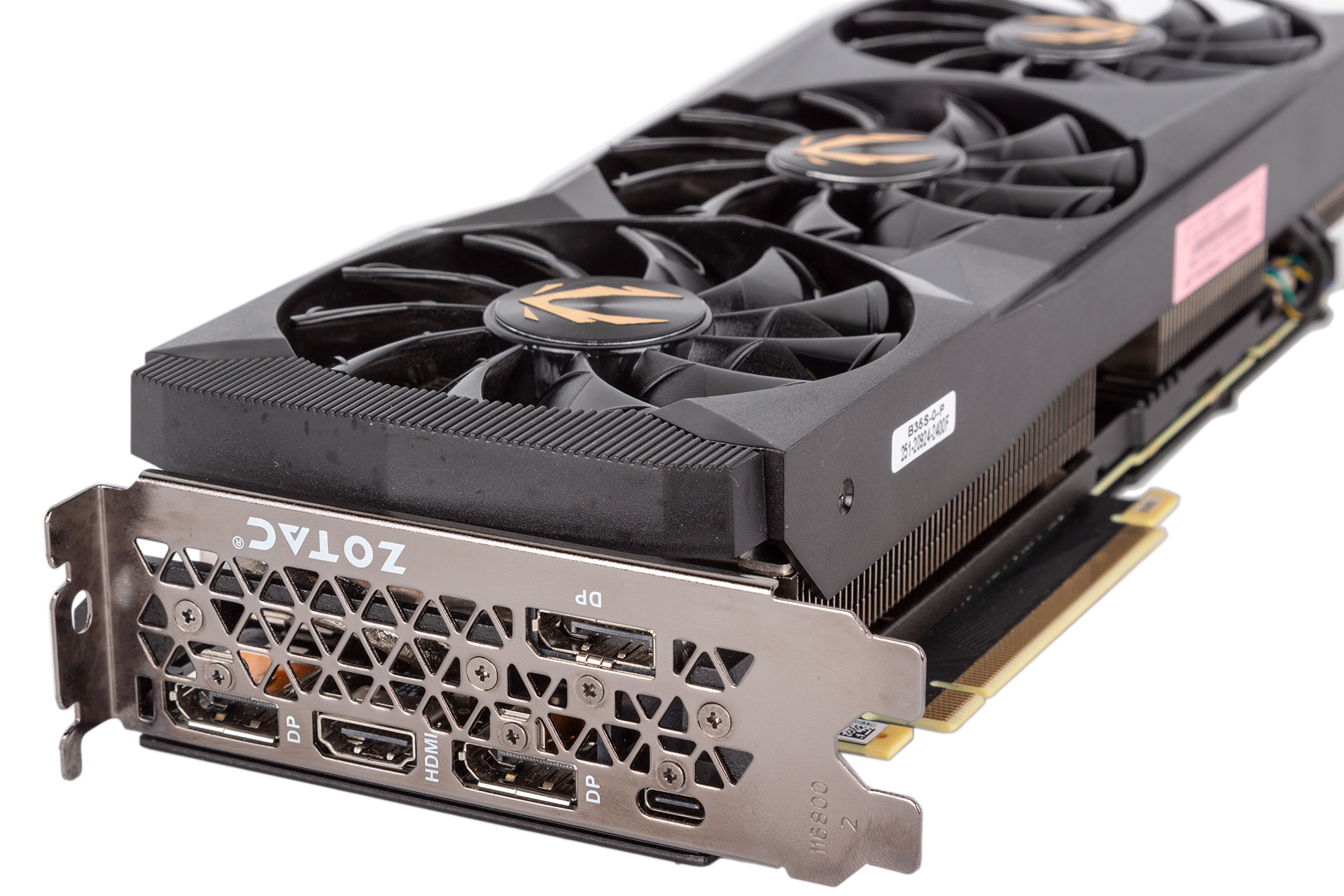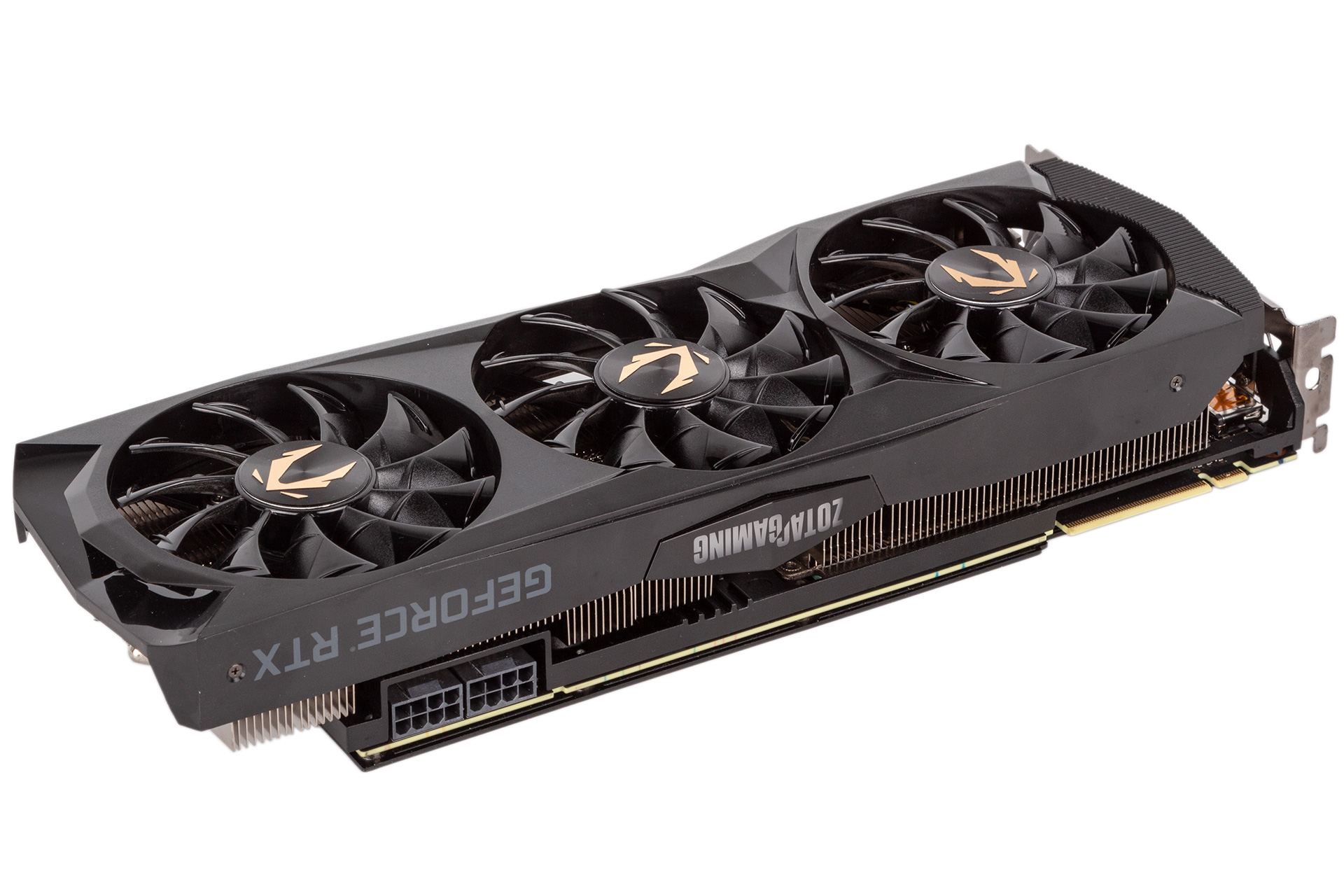 The display outputs and power inputs remain the same as they are on the Founders Edition, which is fine since there’s no reason to change either. Zotac does supply a pair of dual-six-pin to single-eight-pin PCIe adaptors, but they’re ugly and unbraided.